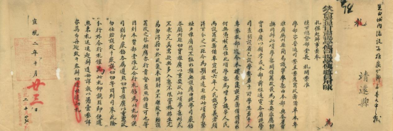 上图是定西市档案馆馆藏清代档案,发文日期为宣统二年十月二十三日,是署理甘肃提学使司接陕甘总督关于催办简易识字学塾事宜,以合行札催发至靖远县的公文。